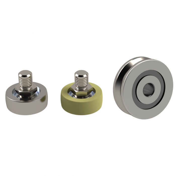 当前的MadeWell系列包括两个线性导轮产品。碳钢或聚合物有四种尺寸的冠辊。碳钢或不锈钢有三种尺寸的径向轮。